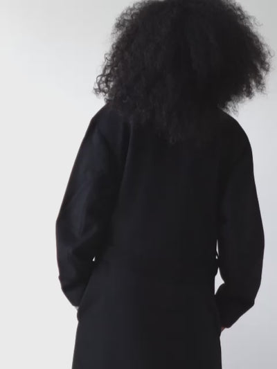 Crafted from 50% recycled wool and 40% recycled polyester, this coat combines warmth, sustainability, and timeless design. Designed without buttons for a sleek, minimalist look, it features a belt closure that flatters the waist.